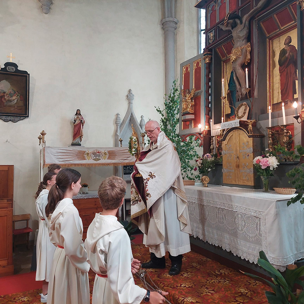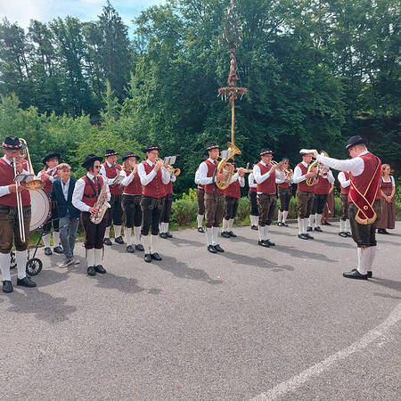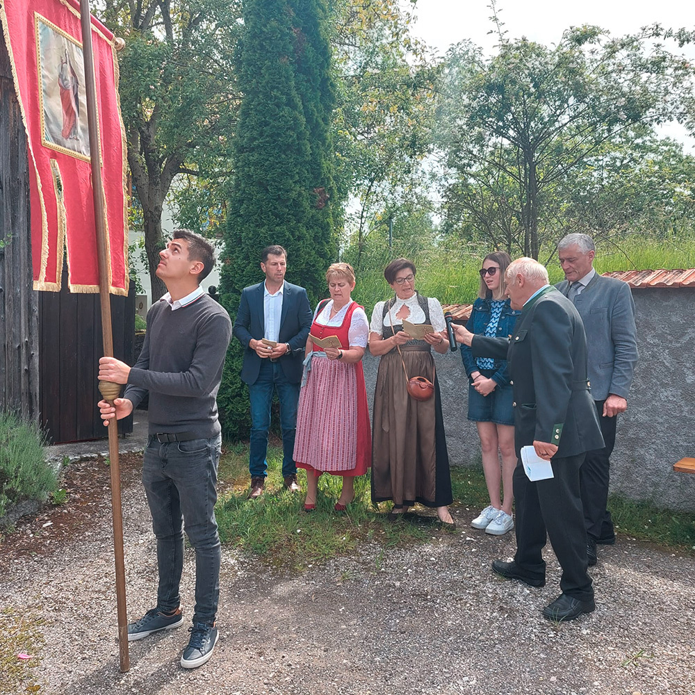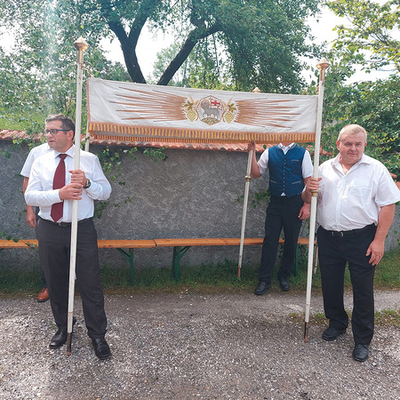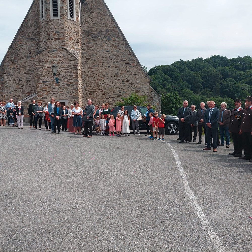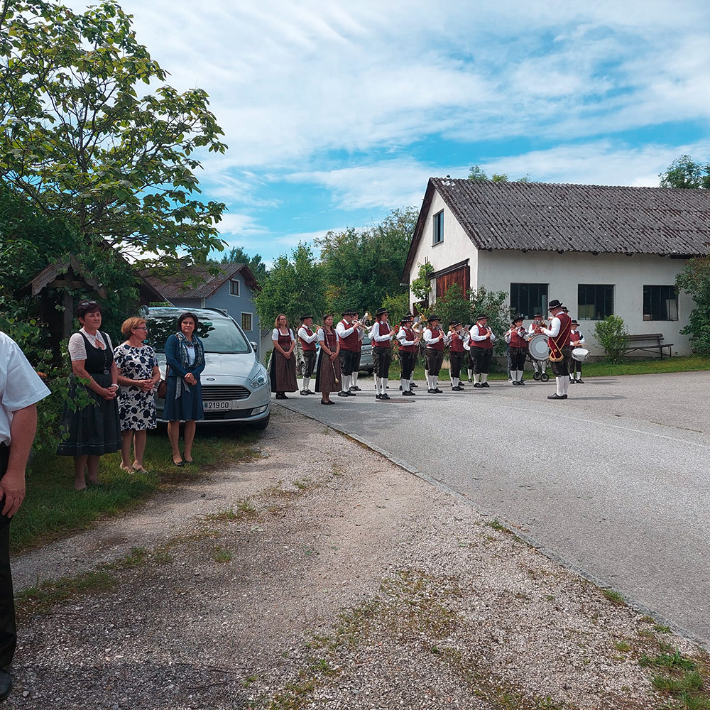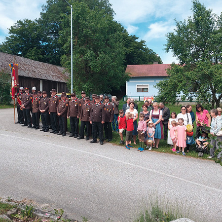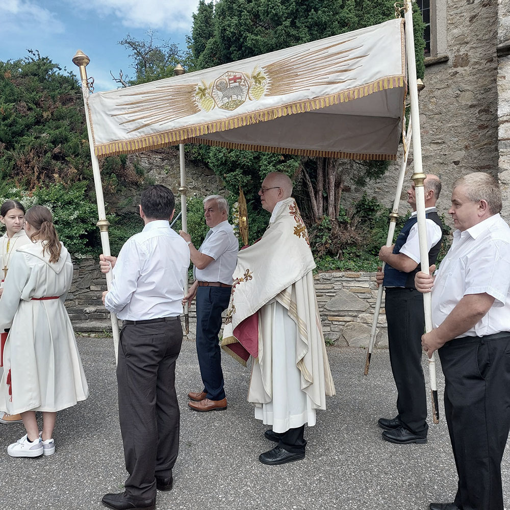 Dank der Mithilfe vieler Helfer zog nach dem Gottesdienst die Prozession mit dem Allerheiligsten und der Mitwirkung der Freiwilligen Feuerwehr Pöbring und der Trachtenkapelle Artstetten zu drei Altären: vor das Haus Wögerer, vor den Pfarrhof und vor das Kriegerdenkmal, wo der Abschlusssegen stattfand.