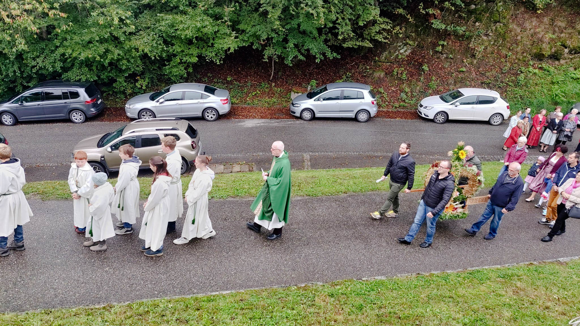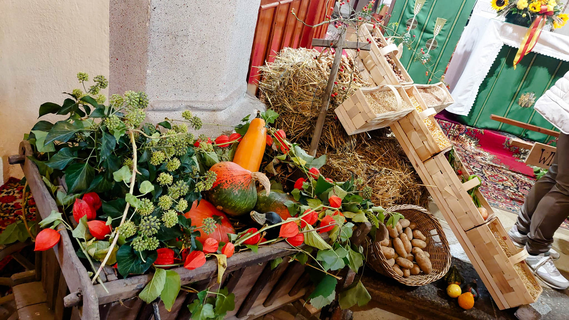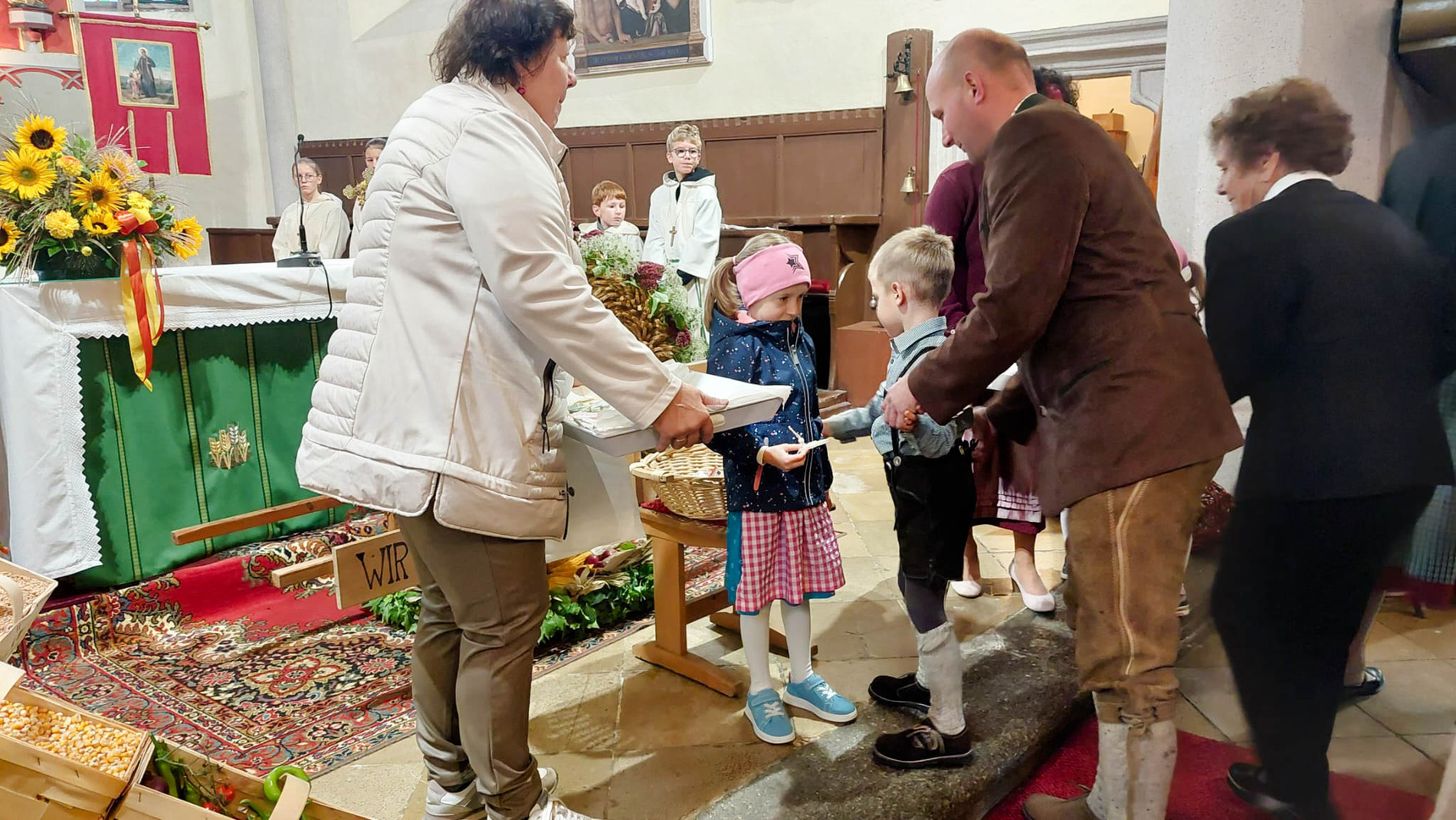 Zum Einzug wurde die Erntekrone vom Platz beim Feuerwehrhaus in die Kirche getragen. Nach dem feierlichen Gottesdienst, bei dem die Besucher als Dank für das Erntedankopfer ein selbst hergestelltes Geschenk erhielten, wurde bei der Agape im FF-Haus mit Apfelsaft, Brot und Wein das Fest ausklingen lassen.