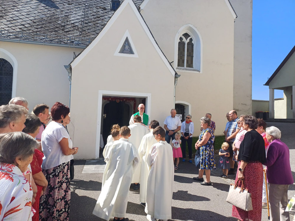 Anlässlich des Schaumittwoch machte die Pfarre Pöbring am Sonntag, 22.6.2025 ihre jährliche Wallfahrt nach Neukirchen/Ostrong. Diese Wallfahrt gibt es schon sehr lange. Es ist nicht bekannt, wann sie entstanden ist. Sie geht zurück auf ein schlimmes Unwetter an einem Mittwoch Mitte Juni, das schwere Schäden in Dörfern der Pfarre verursachte. Daher auch die Wallfahrtsbezeichnung Schaumittwoch, umgangssprachlich für Schauermittwoch.